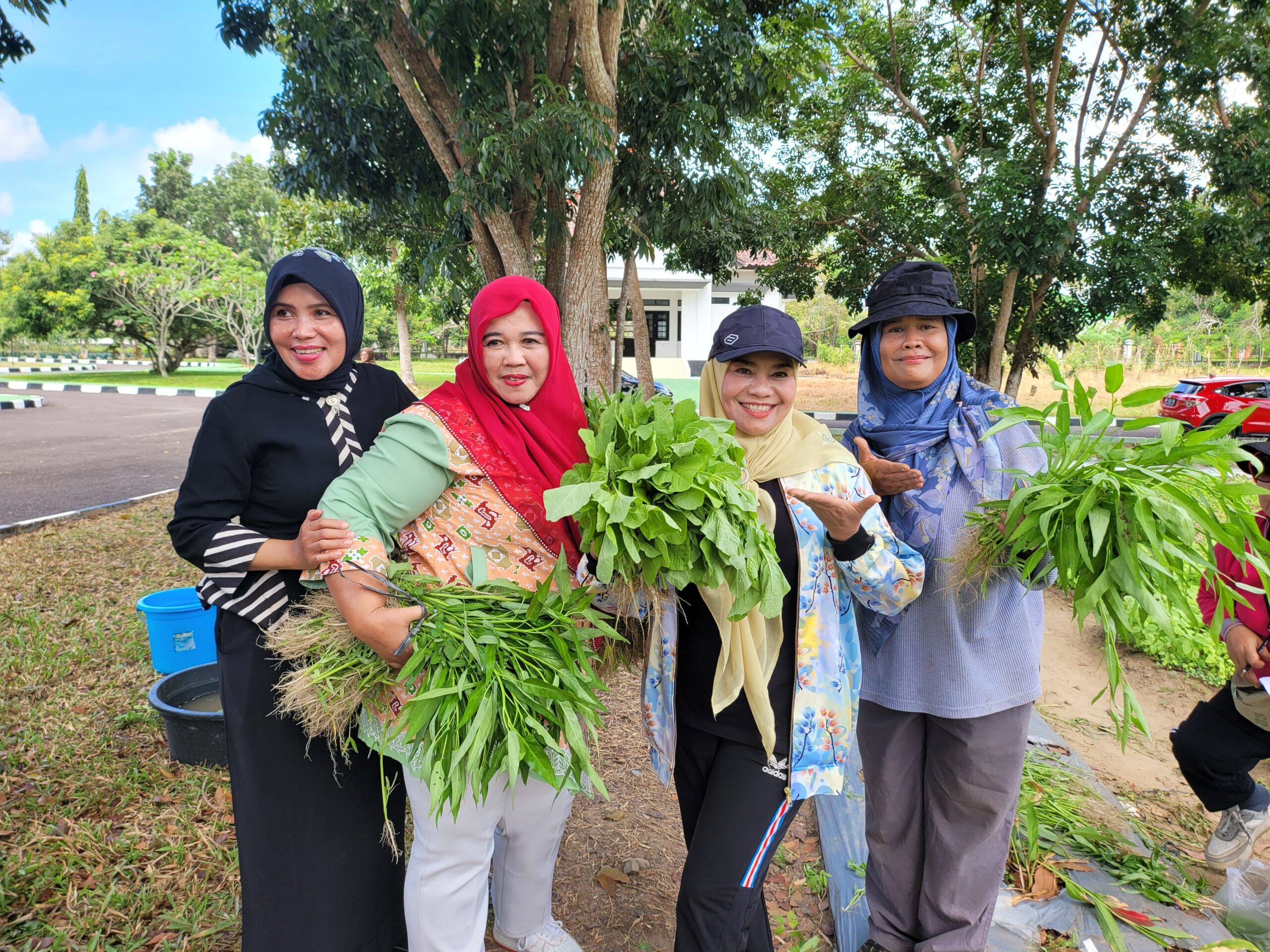 Dirinya juga sangat mengapresiasi pengurus TP PKK Provinsi yang tidak lelah merawat hingga turut turun memanen permintaan sayur yang kadang lebih dari 100 kg.