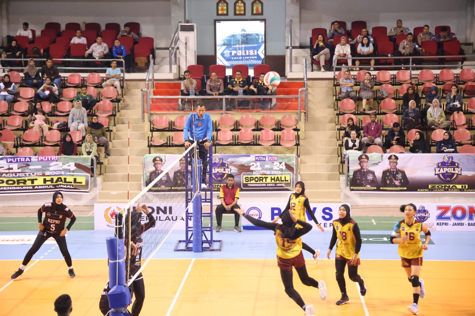 Meski sempat tertinggal pada Set pertama, Tim Voli Putri Polda Bangka Belitung akhirnya berhasil membalikkan keadaan dan menang atas Tim Tuan Rumah Polda Kepulauan Riau (Kepri) dengan skor 3-1.