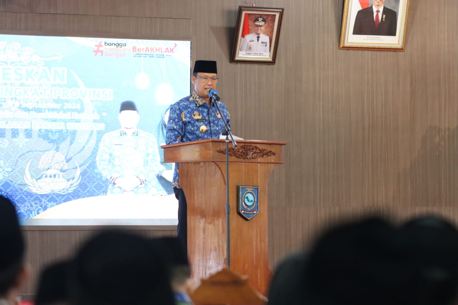 ZHIENEWS.COM, PANGKALPINANG – Penjabat (Pj) Gubernur Kepulauan Bangka Belitung (Babel) Sugito, membuka kegiatan Musabaqoh Tilawatil Quran (MTQ) untuk kalangan Korps Pegawai Negeri (KORPRI) Tingkat Provinsi Kepulauan Babel tahun 2024, yang berlangsung di Aula Graha Tama Wiyata BKPSDMD Babel, Senin (02/09/24).