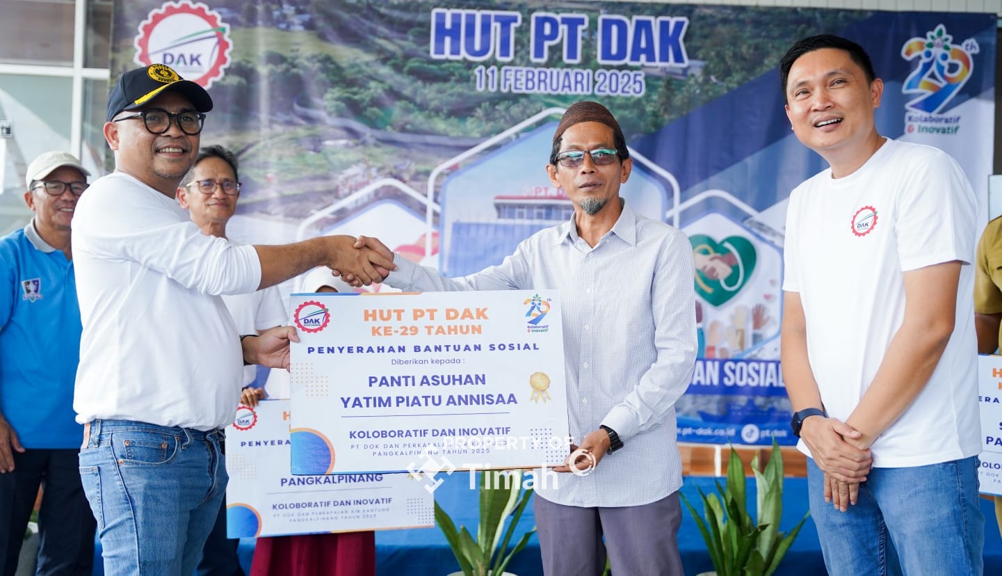 ZHIENEWS.COM, PANGKALPINANG – Dalam momentum HUT Ke-29, PT DAK dan Perkapalan Air Kantung terus berkomitmen untuk memberikan kontribusi terbaik bagi masyarakat melalui program Tanggung Jawab Sosial dan Lingkungan (TJSL).