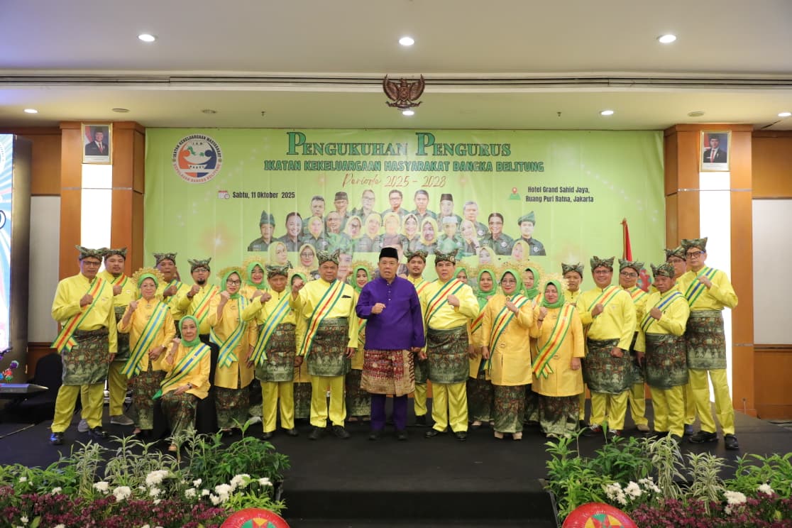 ZHIENEWS.COM, JAKARTA — Gubernur Kepulauan Bangka Belitung (Babel), Hidayat Arsani, mengukuhkan Ketua dan Pengurus Ikatan Kekeluargaan Masyarakat (IKM) Provinsi Kepulauan Babel periode 2025–2028, yang berlangsung di Hotel Grand Sahid Jaya, Jakarta, Sabtu (11/10/2025).