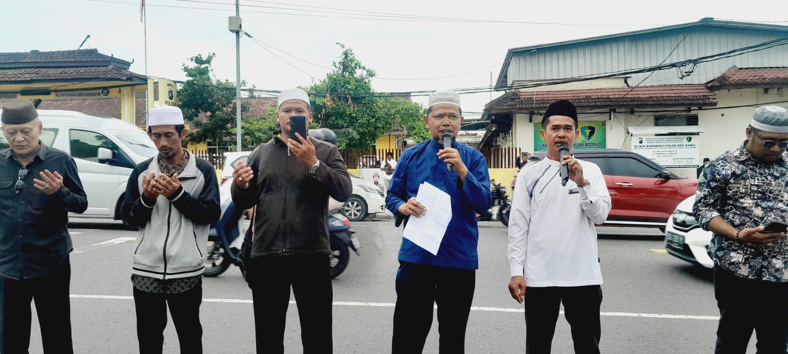Suasana aksi semakin bersemangat ketika Ketua Dewan Masjid Indonesia (DMI) Provinsi Kepulauan Bangka Belitung, Ustaz Ridho, memimpin yel-yel “Free! Free Palestine!” yang menggema di seluruh area aksi. Ia juga mengajak peserta untuk menyiarkan semangat solidaritas tersebut melalui siaran langsung di media sosial masing-masing.